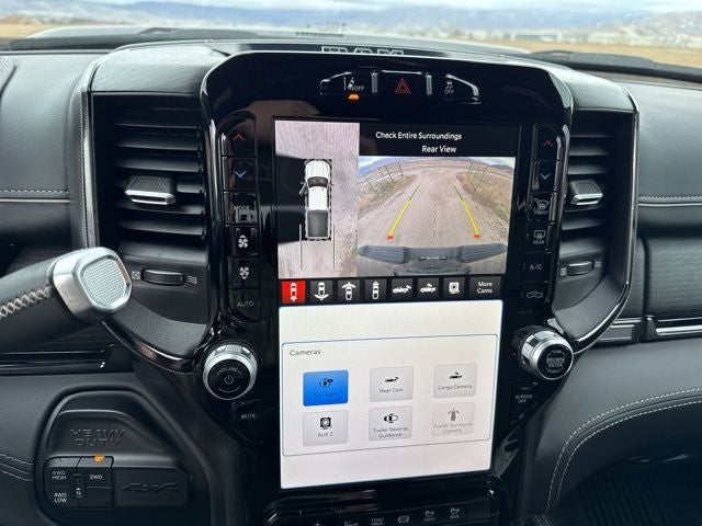 4WD, Leather Interior, Heated/Ventilated Seats, Navigation System, Backup Camera, Bluetooth®, Blind Spot Monitors, Touch Screen Controls, Push Button Start, Automatic Headlights, 12 Touchscreen Display, 17 Speaker harman/kardon Premium Sound, 4 Adjustable Cargo Tie-Down Hooks, 4G LTE Wi-Fi Hot Spot, Adaptive Cruise Control w/Stop, Adaptive Steering System, Alexa Built-In, Apple CarPlay, Black Exterior Truck Badging, Black Grille Limited, Black Headlamp Bezels, Black Ram Head Tailgate Badge, Black Tail Lamp Bezels, Black Wheel Center Hub, Body Color Grille Surround, Center Hub, Center Stop Lamp w/Cargo View Camera, Connected Travel & Traffic Services, Connectivity - US/Canada, Digital Rearview Mirror, Disassociated Touchscreen Display, For Details Visit DriveUconnect.com, For More Info, Call 800-643-2112, Full Speed Forward Collision Warning Plus, Global Telematics Box Module (TBM), Google Android Auto, GPS Antenna Input, GPS Navigation, HD Radio, Integrated Voice Command w/Bluetooth®, Lane Keep Assist, LED Bed Lighting, Limited Level 1 Equipment Group, MOPAR Spray In Bedliner, Night Edition, Night Edition w/Dual Rear Wheels, Off-Road Information Pages, Power Deployable Running Boards, Protection Group, Quick Order Package 21M Limited, Radio: Uconnect 5 Nav w/12.0 Display, RamBox Cargo Management System, Ramcharger Wireless Charging Pad, Selectable Tire Fill Alert, SiriusXM Radio Service, SiriusXM w/360L, Sport Performance Hood, Surround View Camera System, Trailer Reverse Guidance, Trailer Tow Pages, Truck Bed Cargo Divider, Vendor Painted Cargo Box, Vendor Painted Cargo Box Tracking, Wheels: 17 x 6.0 Black Machined Aluminum, Wheels: 20 x 8.0 Cast Aluminum Black, Wheels: 20 x 8.0 Satin Carbon w/Chrome Insert.